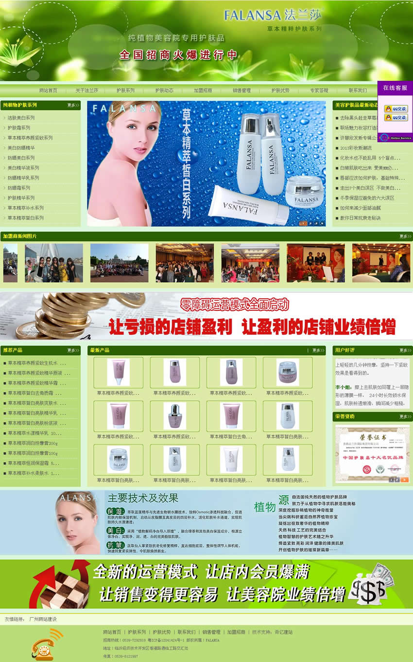 法蘭莎深植本土, 經(jīng)過長期研究,特別針對東方女性膚質(zhì)特 點,開發(fā)出不同系列的產(chǎn)品,能更好的起 到美白、保濕、抗皺等功效。